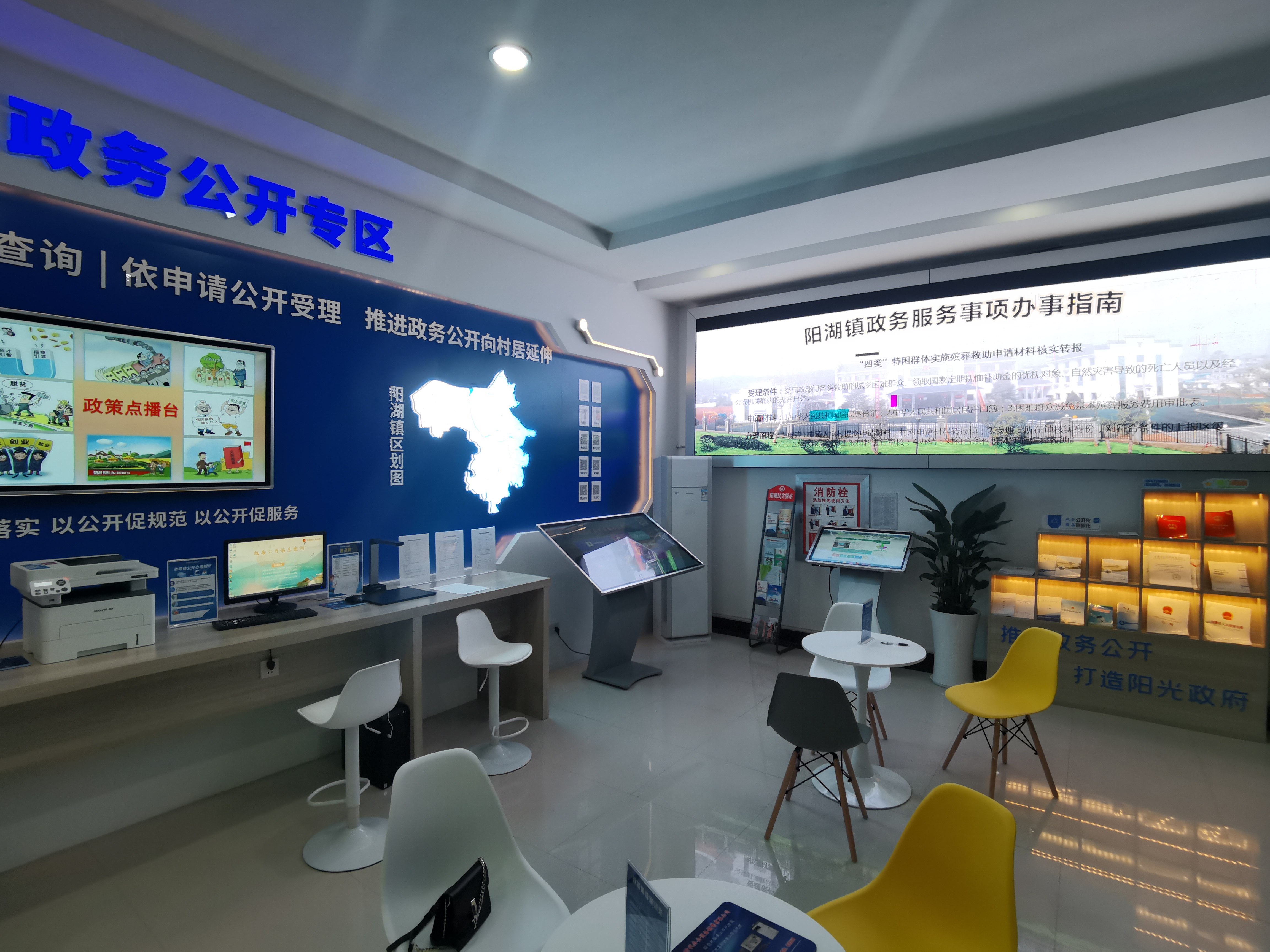 該區陽湖鎮政務公開專區是全區首家具有屯溪特色、現代科技型的特色政務公開專區,服務內容涉及低保、人社、退役軍人、文化等政務服務83項。專區裏,臺式電腦、高拍儀、印表機等服務設備一應俱全,廣告機上展示了依申請公開流程圖及辦理指南,方便群眾清晰查看,橫屏觸摸查詢機上定制化的“政務公開觸摸查詢系統”,能夠方便快捷地滿足群眾獲取政策資訊和處理相關辦事服務事項的需求。