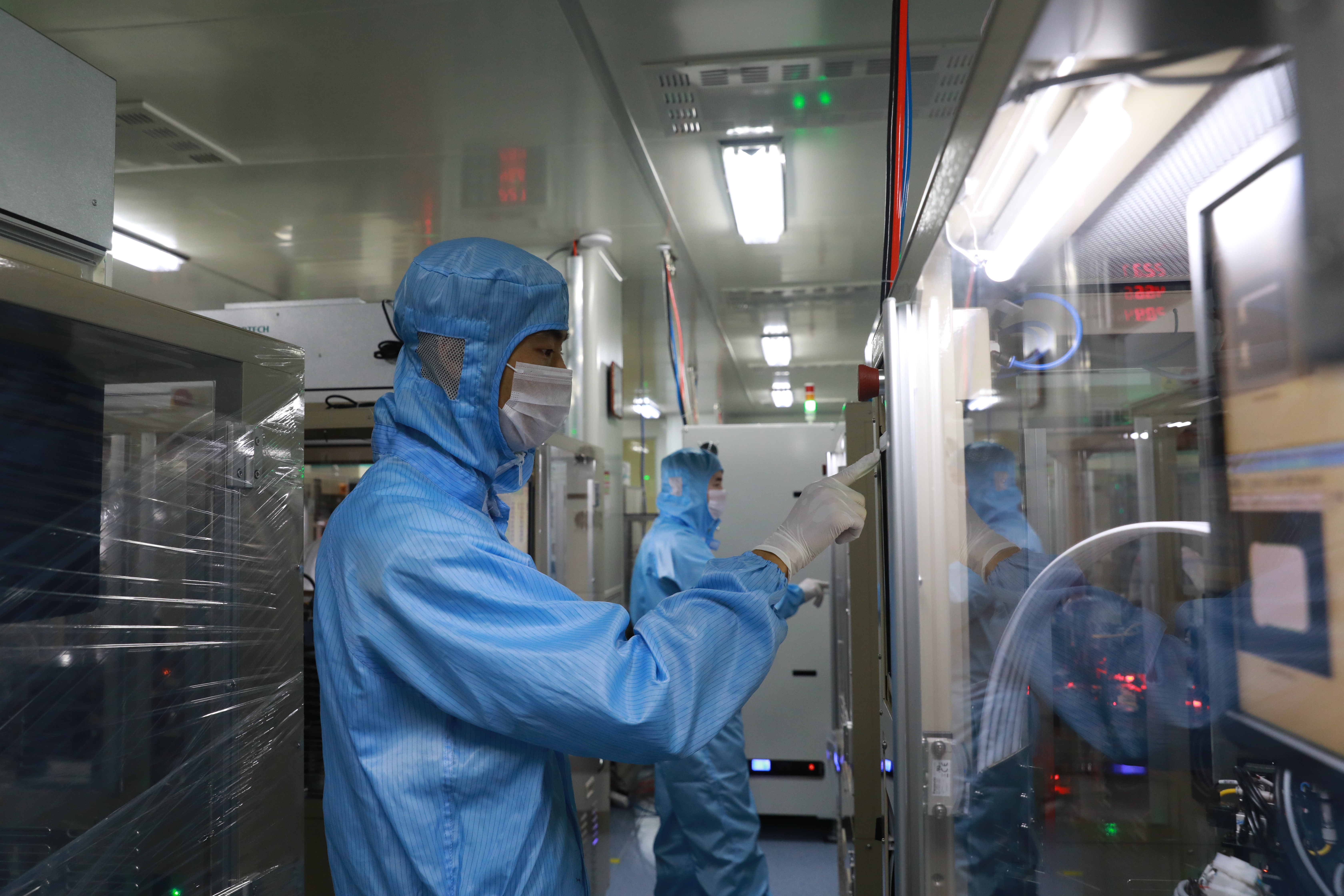 12月24日,在黃山東晶電子有限公司的無塵恒溫生產車間內,操作員正在進行設備調試。