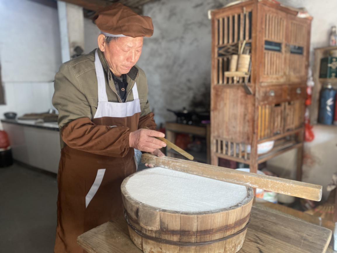 新春臨近,在安徽黃山市徽州區千年古村潛口鎮古塘村,不少農家都開始做菜糕、吃菜糕,品味那融化在舌尖上的傳統美味,感受當下的美好生活。