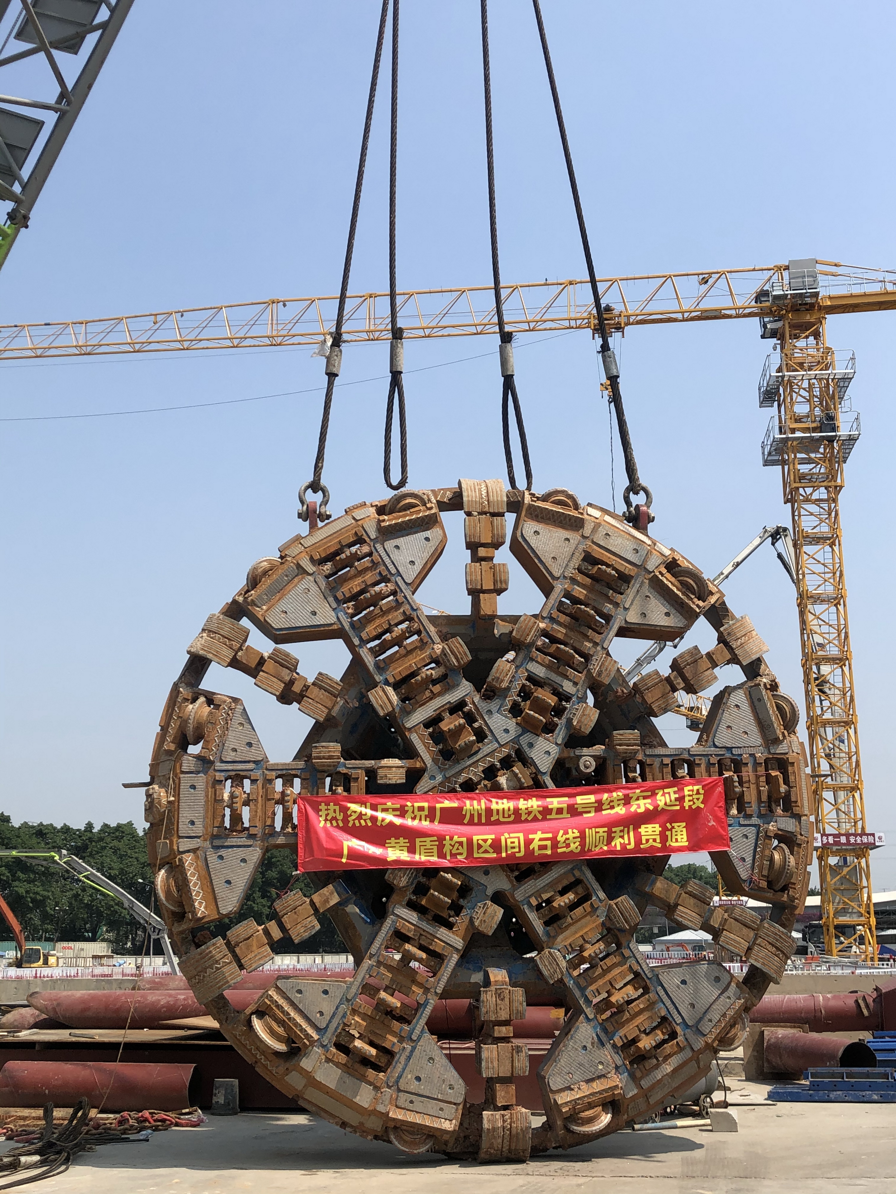 近日,伴隨着盾構機刀盤的緩緩轉動,「工匠號5-1」盾構機破土而出,標誌着地鐵五號線東延段廣州開發區至黃埔客運港區間左線隧道順利貫通,這是該段首個實現隧道雙線貫通的區間。