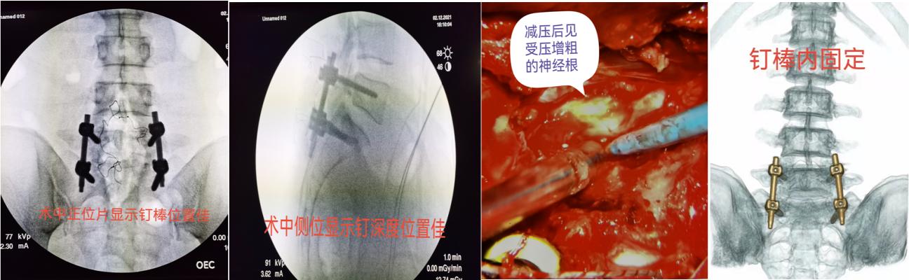 隨後,神經外科二病房王智教授及屈洋主任、王君升主治醫師、鄭岩醫師成立手術小組,制定了手術方案:L5/S1右側椎間孔減壓+L5峽部裂及L5/S1椎板間植骨融合+L5/S1釘棒內固定術。術中,在顯微鏡+神經電生理監測+X線輔助下成功順利,充分神經根減壓及可靠的釘棒孔植骨內固定。麻醉甦醒後患者疼痛感及「沙袋」壓迫感均消失。在醫護人員的共同努力下,患者已康復出院,行走自如,重新自駕車輛,回歸社會開始正常工作和生活。