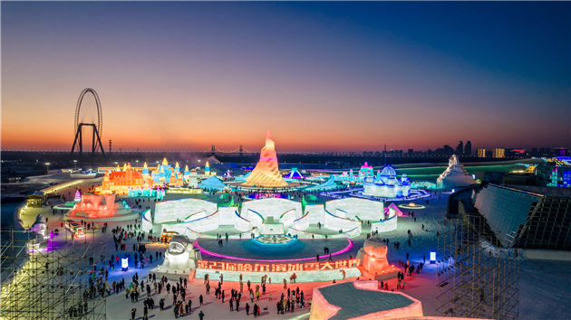 12月25日,第二十三屆哈爾濱冰雪大世界試營業開園迎客。這座佔地面積82萬平方米、景觀建設面積40萬平方米的冰雪樂園,經過2000名工人的晝夜建設打磨,用23萬立方米冰與雪,建造了65組冰雪景觀,單體景觀數量超百個,再一次向市民和遊客展示流光溢彩、壯美夢幻的冰雪奇觀。