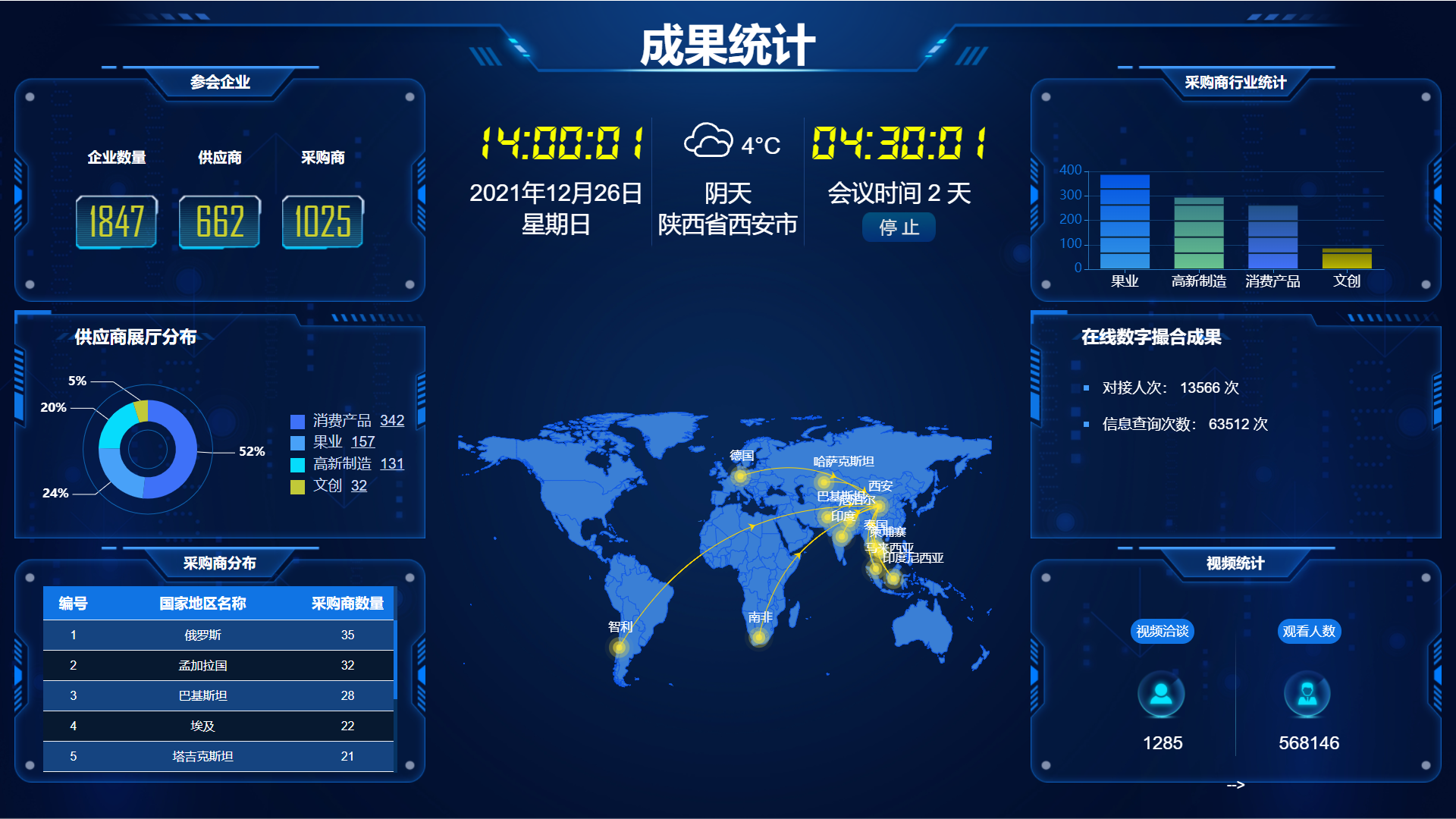 本屆線上展會精準、務實、高效,截至12月26日14時,累計56萬人次在線觀看,來自國內外的1847家企業在線對接合作;企業進行信息查詢63512次;通過數據分析和智能匹配,在線撮合洽談13566次,視頻洽談1285次。線上展會幫助企業在疫情形勢下,足不出戶即可開拓市場。