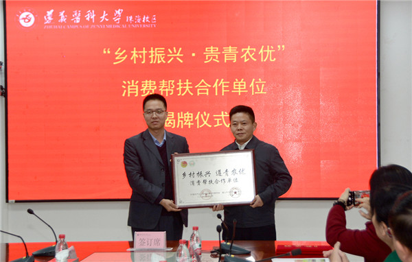 遵義市授予遵義醫科大珠海校區消費幫扶合作牌匾。(陸紹龍攝)