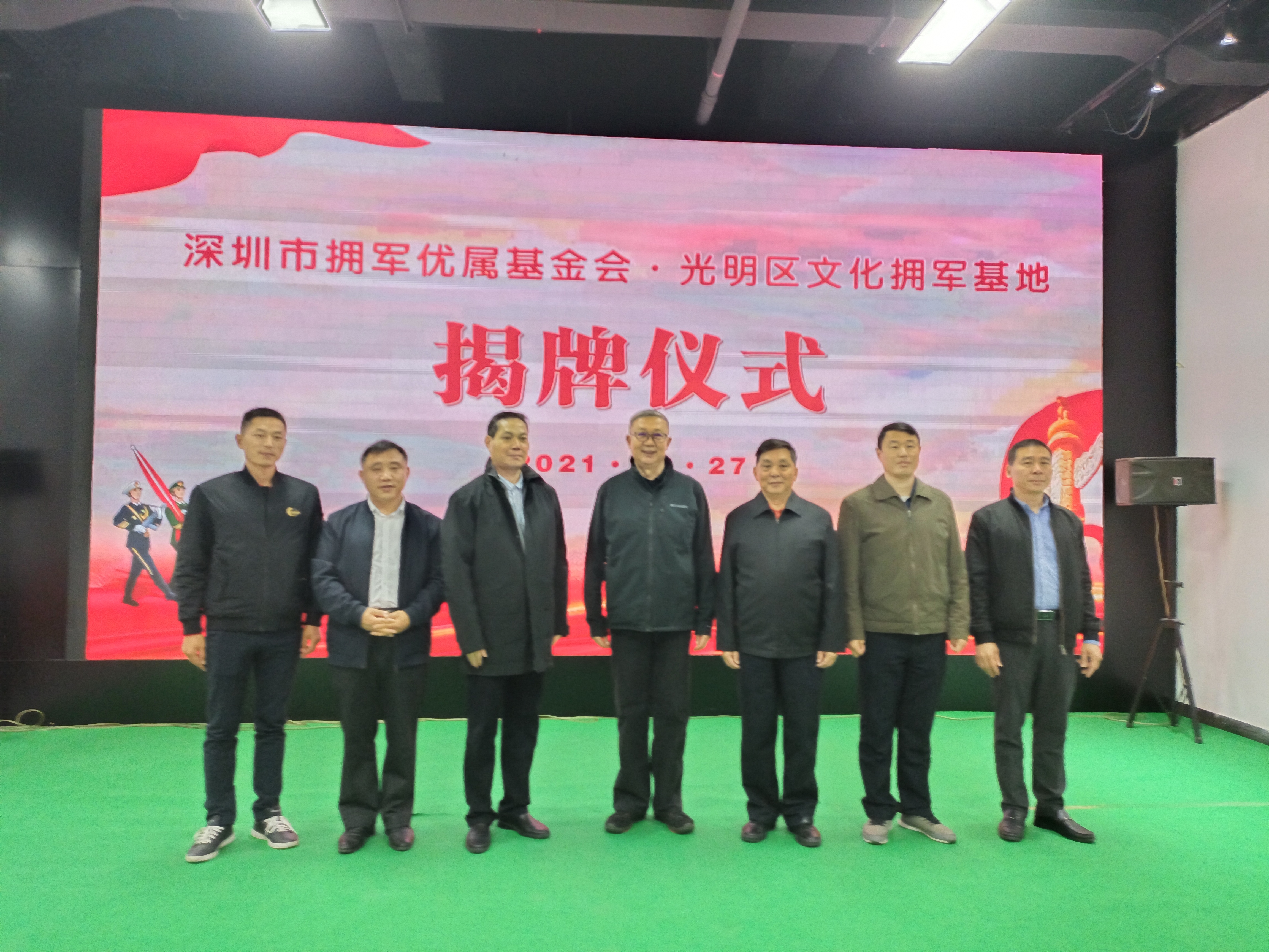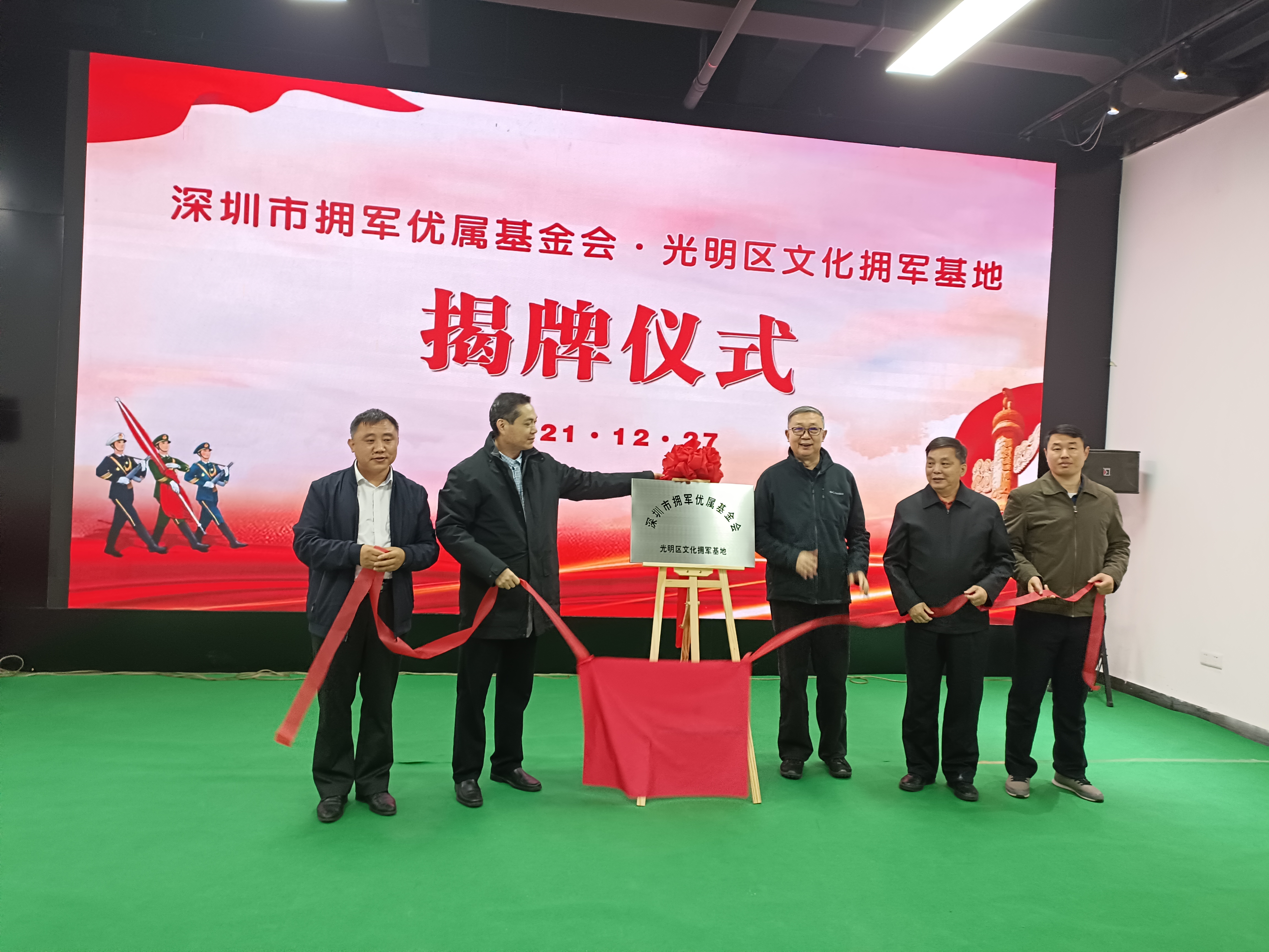 最後,劉勇、王為群、吳泗陸、文超英與張守福共同揭牌,正式成立“深圳市擁軍優屬基金會·光明區文化擁軍基地”。揭牌儀式後,一行人參觀了光明烙畫基地。(記者 蘇偉)