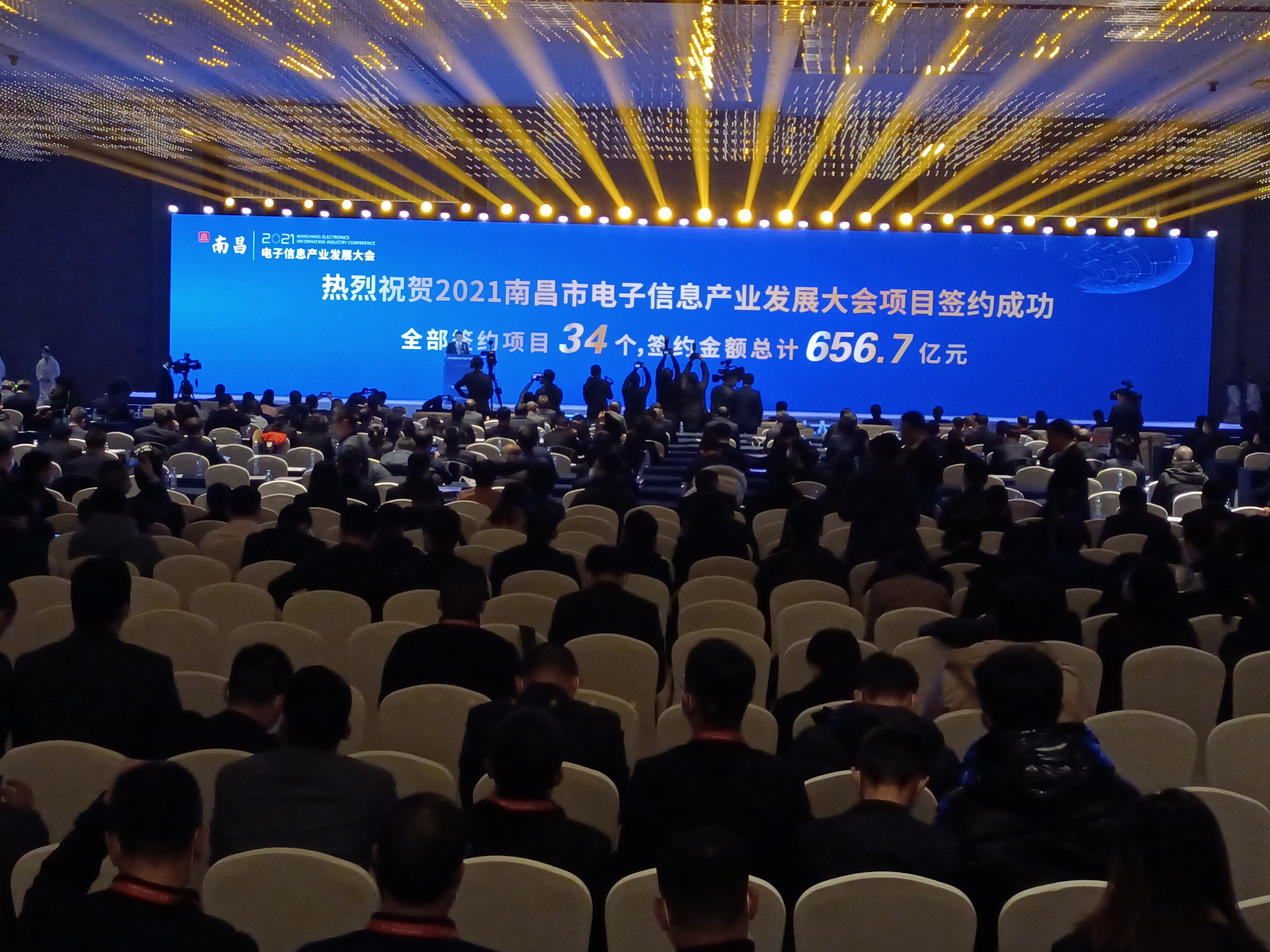 會上舉行了現場項目簽約儀式,共有34個項目簽約落户南昌,總金額達656.7億元。大會提供了《南昌市電子信息產業重點強鏈延鏈補鏈項目清單》,共列出移動智能終端、LED、VR、5G、新型顯示、電子材料、電子元器件、集成電路、物聯網、航空電子、汽車電子、人工智能、雲計算和大數據、工業互聯網、軟件和互聯網等15個細分領域、52類重點強鏈延鏈補鏈項目,為該產業鏈精準招商提供高效引導服務。