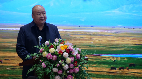 頂圖:博樂市黨委書記、賽里木湖風景名勝區黨工委書記李海軍致辭