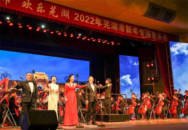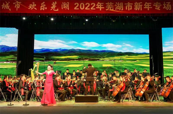 管弦和鳴辭舊歲,濃情雅樂迎新春。12月30日晚,"人民城市 歡樂蕪湖"2022年蕪湖市新年音樂會在百花劇場舉行。蕪湖市道德模範、抗疫英雄、扶貧幹部等社會各界優秀代表歡聚一堂,市領導韋秀芳、董萍、陳怡觀看演出。