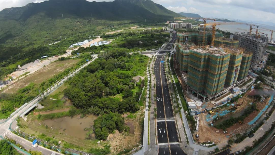 據了解,鵬壩通道工程(壩光段)位於深圳市大鵬新區壩光片區,大致呈南北走向,沿線與石鼓墩路、葵灣路、海康路和排牙山路等道路平面交叉。項目起接新態路,終至環壩路,城市主幹道,雙向四車道,設計速度 40 公里/小時,全長約1.89公里。鵬壩通道工程(壩光段)屬於壩光片區南北向「樞紐幹道」生物谷路的重要組成部分,道路開通完善了壩光片區交通路網體系,對加強片區交通出行能力,促進壩光片區「生物谷」「食品谷」雙谷建設,推動大鵬新區的社會經濟發展具有重要的意義。