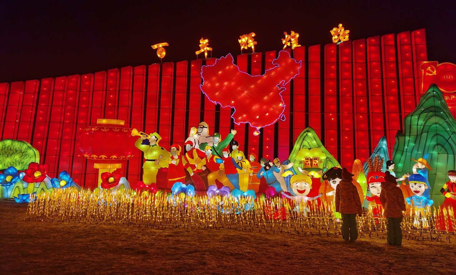 開幕式結束後,嘉賓們沿着「點題-迎賓-懷舊-當下-未來」的時間主軸,通過「福臨天下」、「春滿華夏」燈組區域,走進關東影視城城門,開啟打卡2022中國瀋陽迎春燈會之旅。伴隨着《一起向未來》、《喜洋洋》、《步步高》、《春節序曲》等歌曲,人們沉浸在歡樂喜慶的節日氛圍里。