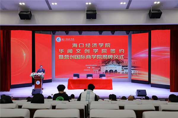 盛世開新元,鴻庠啟新篇。1月5日,海口經濟學院華聞文創學院簽約暨營創國際商學院揭牌儀式在學校北苑電影大樓舉行。華聞集團董事長兼總裁汪方懷,省政府原副秘書長、研究室主任,中國特色自貿港研究院研究員(國務院特殊津貼專家) 朱華友、營創華夏(營創書院)聯合創始人兼CEO蘇丹等合作方領導,與學校董事長曹成傑等校領導出席儀式。
