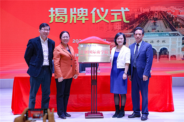 儀式上,學校曹成傑董事長分別與華聞集團董事長兼總裁汪方懷,海南島峰科創、中國特色自貿港研究院研究員朱華友簽署共同舉辦「華聞文創學院」合作協議。與營創華夏(營創書院)聯合創始人兼CEO蘇丹為「營創國際商學院」揭牌。