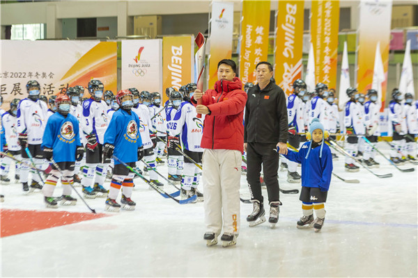 活動儀式上,沈宏宇和遲寶旭致辭。齊齊哈爾冰球運動員李文思手持北京2022年冬奧會火炬「飛揚」,與他的父親和兒子一同腳踏滑冰鞋,緩緩滑進儀式現場,將「飛揚」交接給殷昌波和王剛手中進行現場展示。隨後,殷昌波、王剛、沈宏宇、遲寶旭一同開動啟動裝置,伴隨着現場動感的音樂和小冰球運動員們整齊劃一的手舞,將北京2022年冬奧會火炬展示活動齊齊哈爾站推向高潮,與此同時,齊齊哈爾第六屆冰球節也正式拉開帷幕。齊齊哈爾作為收官一站,滿懷着對北京冬奧會成功舉辦的熱烈期盼之情和對助力北京冬奧的拳拳之心,以冰球之城的激情,為北京2022年冬奧會火炬「飛揚」在黑龍江的展示之旅畫上了完美的句點。
