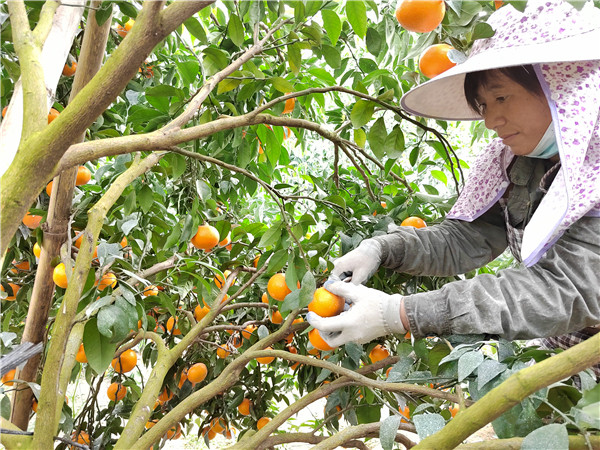 工人穿梭於果樹間,正忙着採摘沃柑。(受訪者 供圖)