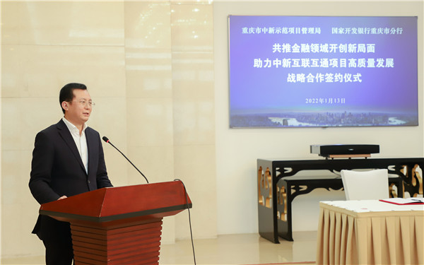 據介紹,根據戰略合作協議,重慶市中新示範項目管理局與國家開發銀行重慶市分行將在金融服務陸海新通道、綠色可持續發展、優化金融對產業服務、聯合新加坡支持西部金融中心建設等方面加強合作,為中新互聯互通項目提供高水平、高質量的路徑規劃建議和項目服務支持,共推金融領域開創新局面。