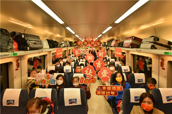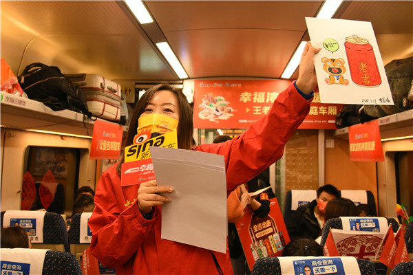 針對春運期間帶娃家長們的出行痛點,打造全國首個高鐵多娃家庭愛心車廂,工作人員精心佈置了車廂,藉助節慶窗花等吉祥元素打造春節氛圍,並且設置了趣味問答抽獎、孩子填色比拼等互動環節,還為本趟愛心旅途中1月份生日的小朋友準備了集體生日會,讓家長與孩子們可以在一個歡樂喜慶的氣氛里平平安安回家。