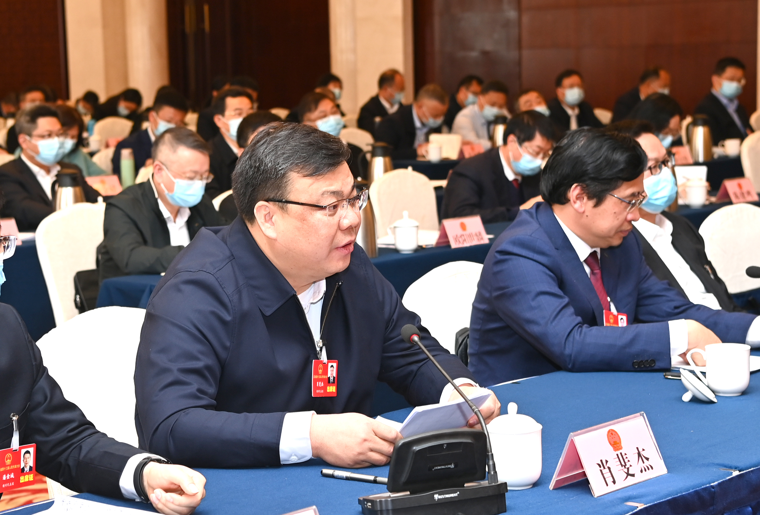 江西省人大代表、寧都縣委書記肖斐傑在贛州代表團聯組審議時發言