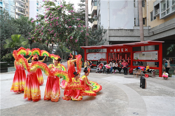 在南崗街四航局塘頭生活區,粉刷翻新後的牆面上融入歷史典故、文明禮儀、國學經典等彩繪;在長洲街黃船生活區,微改造項目重點注入以造船業為主的中國現代製造業歷程、「一帶一路」建設等文化元素;在紅山街火電小區,講述廣東火電工程有限公司發展歷程的背景牆,突顯火電社區歷史底蘊,以「琴、棋、書、畫」為主題打造的四大公共區域增加了小區文化特色;在黃埔街遠洋小區,社區的老人活動點升級改造成為「銀髮初心驛站」,為老人免費提供用餐,為離退體老黨員開展精神文化養老活動提供了場地,讓群眾感受「有溫度的黨建、有質感的幸福」……