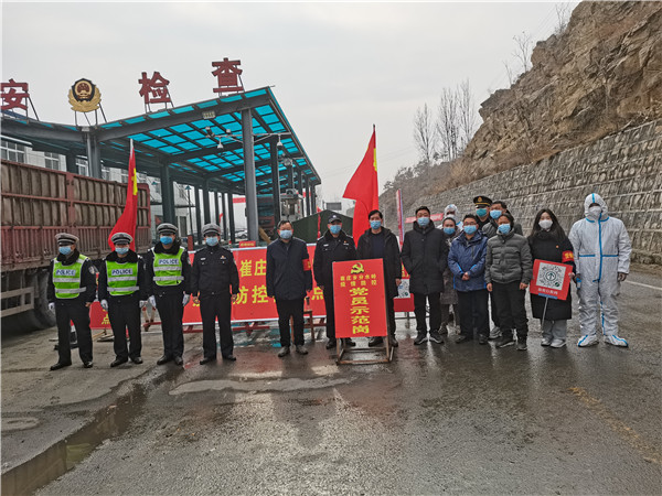 在南召縣崔莊鄉回龍溝疫情防控黨員示範崗,廣大黨員幹部嚴陣以待