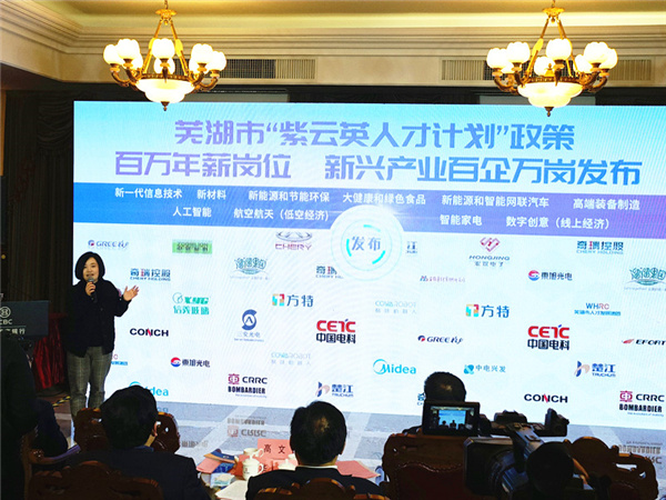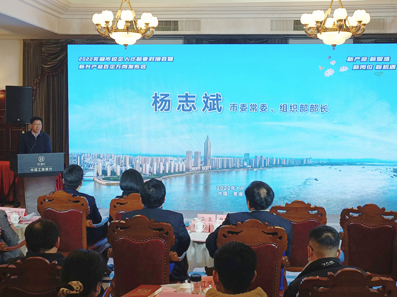 「今天,在企業、高校的支持下,我們強勢發佈新興產業『百企萬崗』,這一萬多個優質崗位,既是我們為各類人才實現夢想提供的『入場券』,也是蕪湖向全社會推介城市形象的『金名片』。」