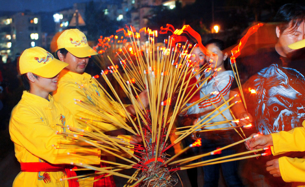據了解,南澳舞草龍習俗是南澳漁民過年習俗中最為熱鬧的一種民俗活動,起源於明代,盛行於清朝,並一直流傳至今,固定於每年大年初二舉行。村民們上午把劍草和淨草割回來曬乾,下午用繩子把草紮成每節約1米長的龍身,晚上把紮好的草龍搬到天后廟門前小廣場上,開始舞龍。火龍逶迤曲前進,所到之處,家家點燃紅燭,奉上生果、水酒,整個漁村一片節日喜慶景象。最後,舞草龍隊伍來到海邊,舉行「化龍」儀式,鞭炮、鑼鼓齊鳴,火光沖天,全村男女老少站在海堤上一同送龍,共同祈願消災除穢、新年吉祥,場景蔚為壯觀。