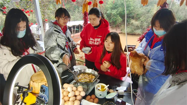 大寒時節,皖南休寧縣高充村國權生態養殖家庭農場卻溫暖如春、人頭攢動。“新來的寶寶們點點關注”“記得下單哦”……山林裏、爐灶邊、雞舍旁,百位主播的叫賣聲此起彼伏。日前,一場由黃山旅遊發展股份有限公司發起的“百人直播”農產品帶貨正在此火熱開展,為黃山農副產品的出山注入“雲”動力。當天直播成交1400多單,雞蛋200箱、土雞1200只……