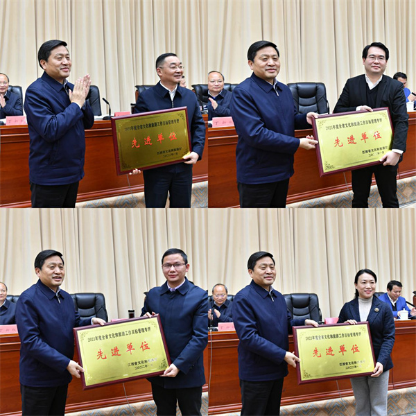 會上還表彰了2021年度江西全省文化和旅遊工作目標管理考評先進單位,李小豹為獲獎單位頒發獎牌。九江市、贛州市、上饒市、景德鎮市文廣新旅局負責人作交流發言。(郭美勤 黃凌媛)