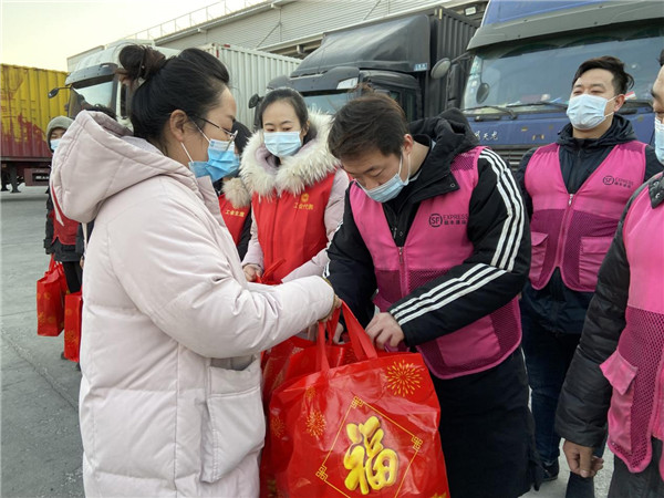 隨後,區總工會走進遼寧順路物流有限公司和遼寧京邦達供應鏈科技有限公司京東快遞瀋陽河畔營業部,為貨車司機和快遞員們送去春聯福字、保溫杯、口罩、帽子、暖貼等關愛物資,把工會組織的親切關懷送到勞動者們的心坎上。快遞小哥們紛紛表示,儘管天氣寒冷,但內心無比溫暖,感謝「娘家人」讓我們在渾南收穫到滿滿的幸福感和安全感。