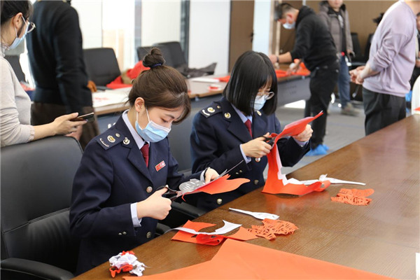 在閱讀沙龍活動中,區總工會走進瀋陽芯源微電子設備股份有限公司,與瀋陽渾南現代有軌電車運營有限公司、區稅務局以及瀋陽鑫鴻建實業有限公司留沈留渾職工共同開展讀書品閱活動。活動現場,邀請區職工讀書會領讀人對《習近平的七年知青歲月》等書籍進行解讀分享。部分留沈留渾過年職工交流了老家春節習俗風俗等故事。區總工會還為參與活動的職工贈送了書籍大禮包,並特邀中國民間剪紙協會會員、非物質文化遺產傳承人楊駿為職工們講解剪紙窗花的技巧,一幅幅栩栩如生、形神畢肖的剪紙給臘月增添了不少年味。同時,剪紙藝術家現場剪裁的「振興新突破 我要當先鋒」十個大大的紅字體現出渾南廣大職工在2022年踔厲奮發、篤行不怠,以拼的姿態、搶的勁頭、實的作風奮力衝刺東北綜合實力「第一區」,迎接黨的二十大勝利召開的信心和決心。(王藝橋)