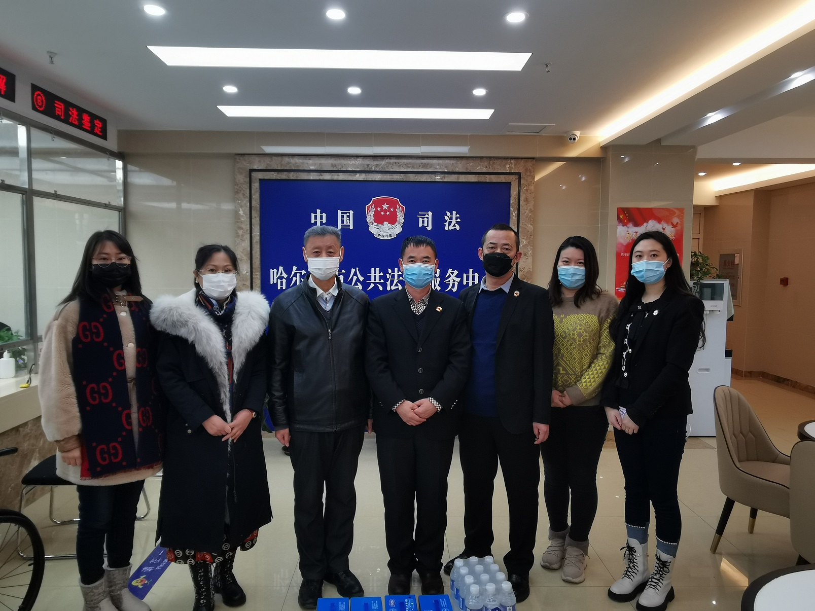 在新春佳節即將來臨之際,黑龍江省人民調解協會按照省司法廳領導的指導精神,受省司法廳人民參與和促進法治處處長馬萬里處長的指派和協會會長王紅梅的委託,由秘書長杜松濤、調解員魏忠江、裴振萍、宋佳慧同志一行於2022年1月27日走訪慰問哈爾濱市司法局市非訴訟糾紛解決中心,代表協會向他們致以節日問候和新春祝福,送上慰問品,並座談交流。