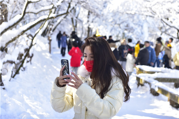 福建遊客林曉琳是第一次來黃山遊玩,面對如此景致,連呼“很美很美”,她說:“太陽剛出來的那一刻真的被震撼到了,我不知道怎麼形容,真的太美了。今天一路走來,雪慢慢融化,山峰也漸漸變得清晰起來,是我從來沒有見過的景色。”