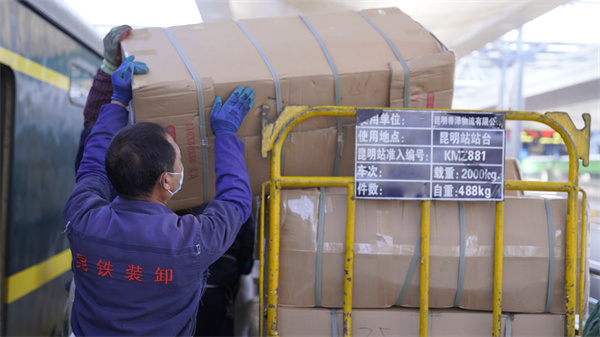 2月份以來雲南鐵路行李車發運鮮花超過100噸,其中高鐵承運重量同比增加900%。(中國鐵路昆明局集團有限公司供圖)