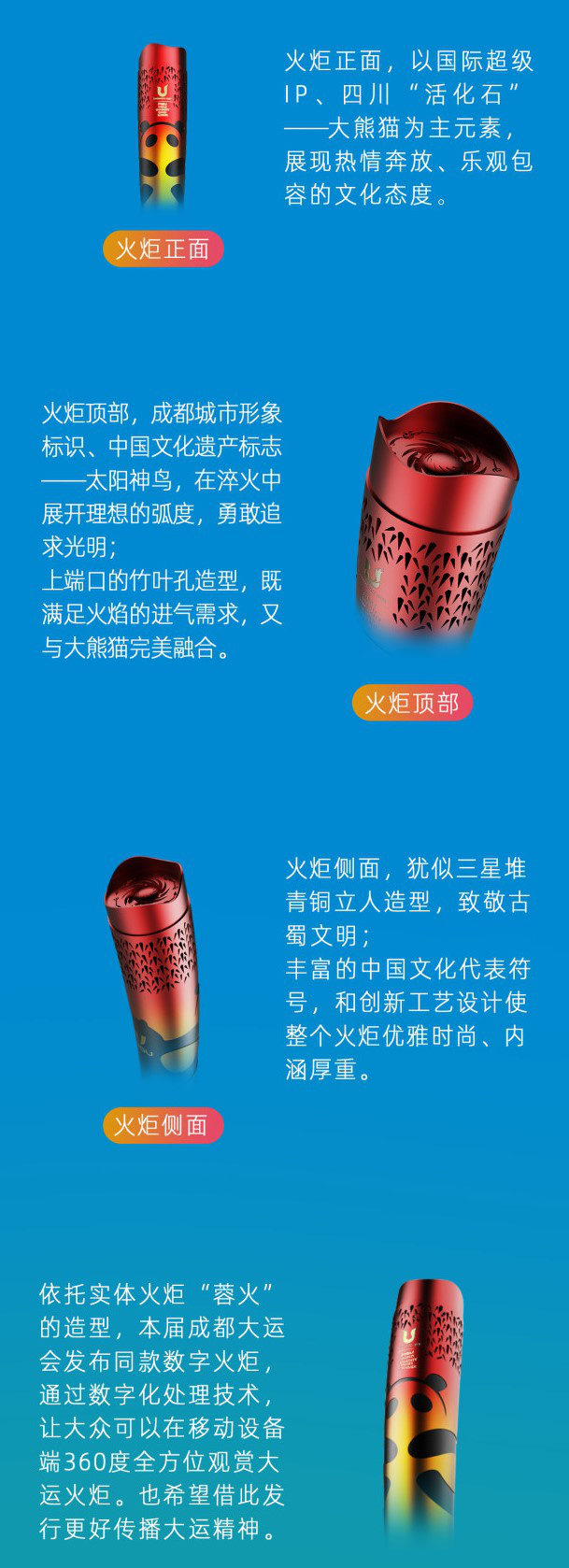 成都大運會發行數字火炬,希望通過數碼化探索和創新,讓更多人能有機會「擁有」大運火炬,並成為大運精神的傳遞者。此外,擁有唯一編號、不可複製及不可篡改的數字火炬,也能讓收藏者擁有一份專屬的大運記憶。