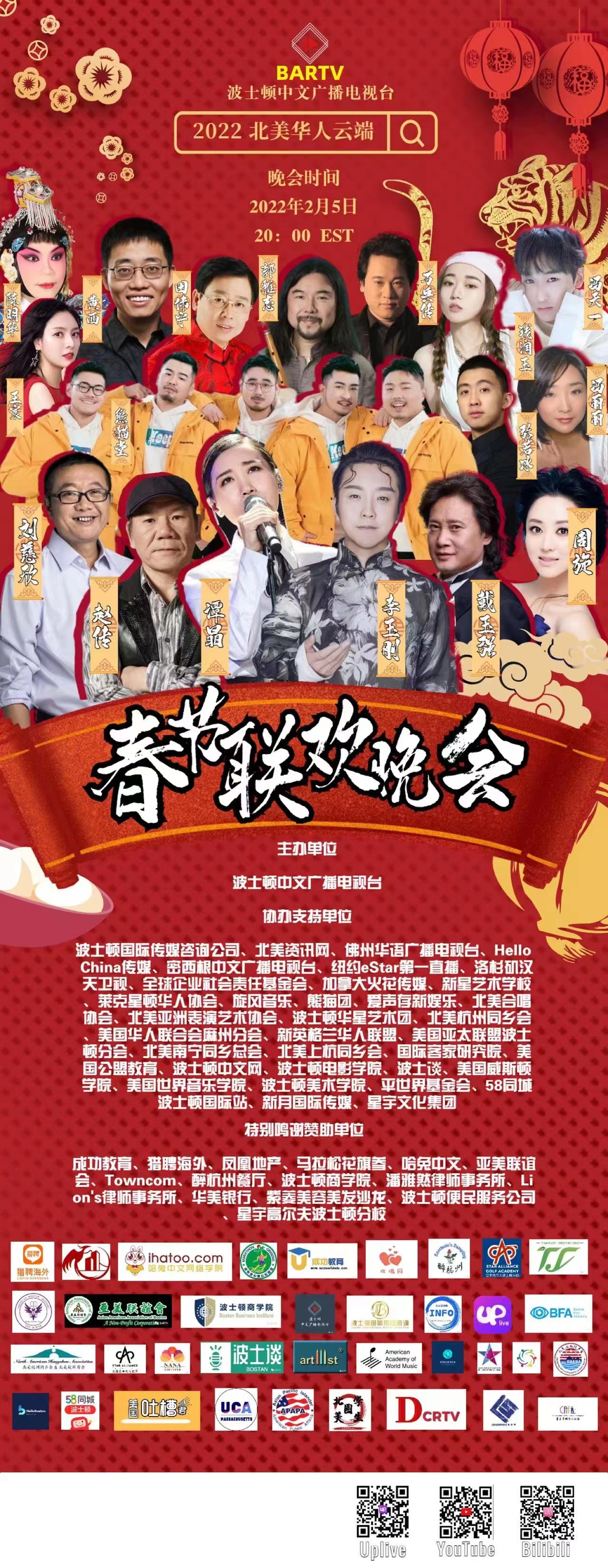 虎年已至,北美大地依然是白雪皚皚千里冰封,但北美華人的愛國之情已經被冬奧聖火點燃。由波士頓中文廣播電視台 (BARTV)主辦,全球企業社會責任基金會、波士頓國際傳媒諮詢公司、北美資訊網、佛州華語廣播電視台、Hello China傳媒、密歇根中文廣播電視台、紐約eStar第一直播、洛杉磯漢天衛視、加拿大火花傳媒等近50家新聞媒體和美國多州的合作夥伴協辦的2022北美華人云端春節聯歡晚會於2月5日美東時間晚8點(北京時間2月6日早9點)傾情上演。晚會歷經兩個多月的運籌及製作,既有國內藝術家群星薈萃,又有北美華僑親情演出,匯聚了美國多個州的文化特色,上百演員隊伍為北美華人及全世界觀眾呈現了一場央視級別的春晚陣容。旅美鋼琴博士、青年鋼琴演奏家王宸應邀參加演出。