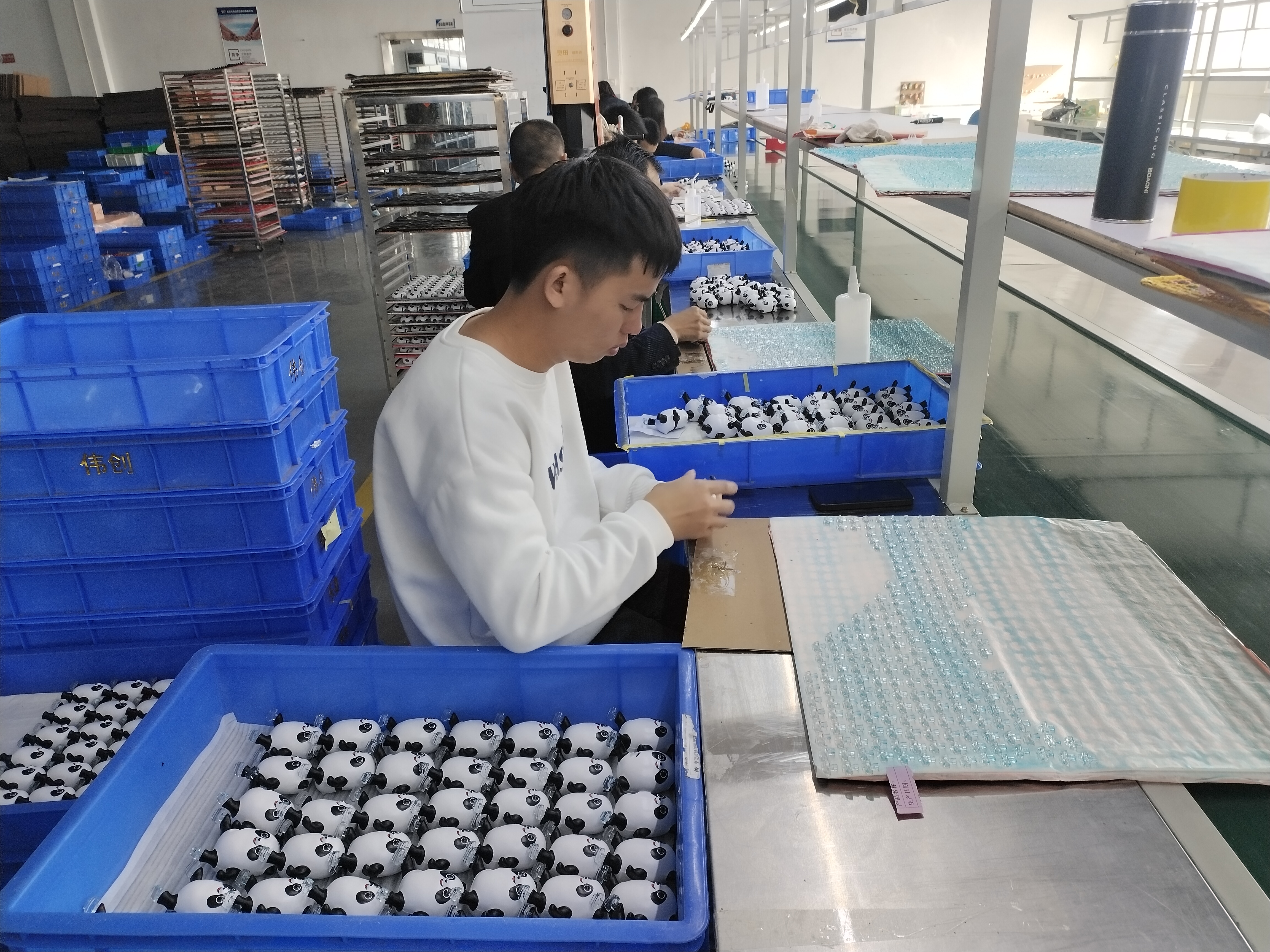 「一開工,訂單量就爆增!」。位於東莞市石排鎮的文博工藝品有限公司正加急馬力生產製作「冰墩墩」「雪容融」手辦擺件。文博工藝是一家具備國家高新技術企業資質的專業玩具製造商,專業從事各類潮玩公仔、盲盒、手辦、立體擺件等創意潮玩玩具及IP衍生品的設計、生產和銷售。2019年,文博工藝積極參與冬奧會吉祥物開發打樣項目,前後歷時一年多設計完成樣品製作,並於2021年下半年開始投產。