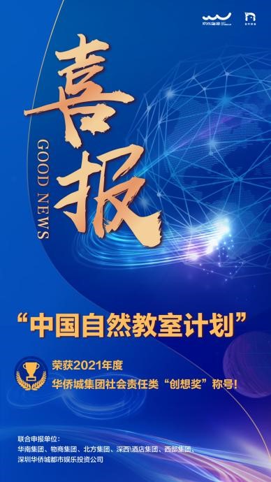 2月14日,2021年度華僑城集團「創想獎」獲獎名單揭曉。由華南集團、北方集團、深西\酒店集團、物商集團和深圳華僑城都市娛樂投資公司聯合申報的「《中國自然教室計劃》助推美麗鄉村振興」從17個社會責任類項目中脫穎而出,榮膺社會責任類「創想獎」稱號,在「我為群眾辦實事」方面展示了華僑城的央企責任與擔當。這也是華僑城華南集團和深圳華僑城都市娛樂投資公司連續第二年榮獲社會責任類「創想獎」殊榮。