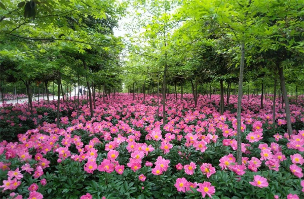 安徽省巢湖市烔煬鎮堯舜牡丹園總面積近800畝,2015年建園,園內主要分為牡丹園區和芍藥園區,此外還有橡樹、紅櫸、櫻花、桃花、映山紅、山茶、海棠等。其中,牡丹和芍藥面積460畝,品種共計45種。每年4月初,牡丹便陸續開放,花期可持續到4月底。接着芍藥開始盛開,從5月初可延續到5月底。(何華 龔舒斌)