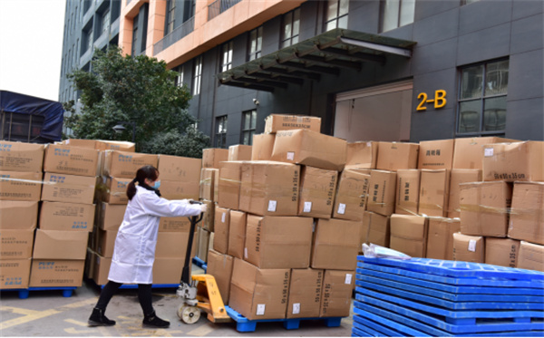 2月21日,合肥高新區明珠產業園2棟廠房內,安徽深藍醫療科技股份有限公司的員工在盤點、搬運貨物,一派熱火朝天的產銷景象。據了解,這裏是該企業春節期間申請下來的新廠房。