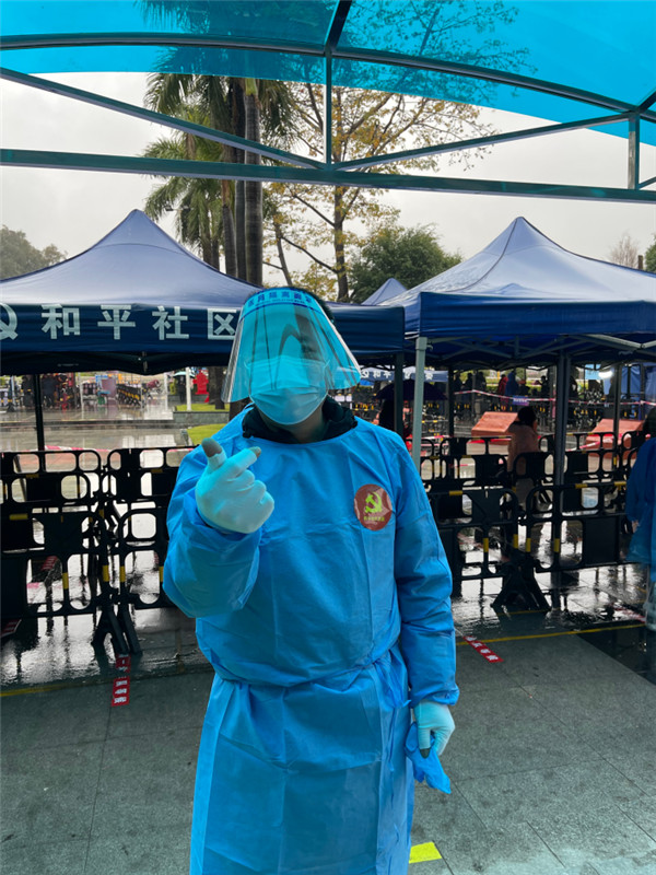 「工作人員雖然戴着醫療手套,但僅靠一層薄薄的乳膠,對保暖起到的作用可以說是微乎其微。但是如果換上棉手套,又不符合防疫標準。」在多次嘗試中,社區發現先戴上棉布手套,並將右手套上的大拇指和食指頂部裁去,再戴上醫療手套,既保暖又不影響手機觸屏效果,確保信息錄入和協助群眾手機填寫核酸碼工作不受影響。