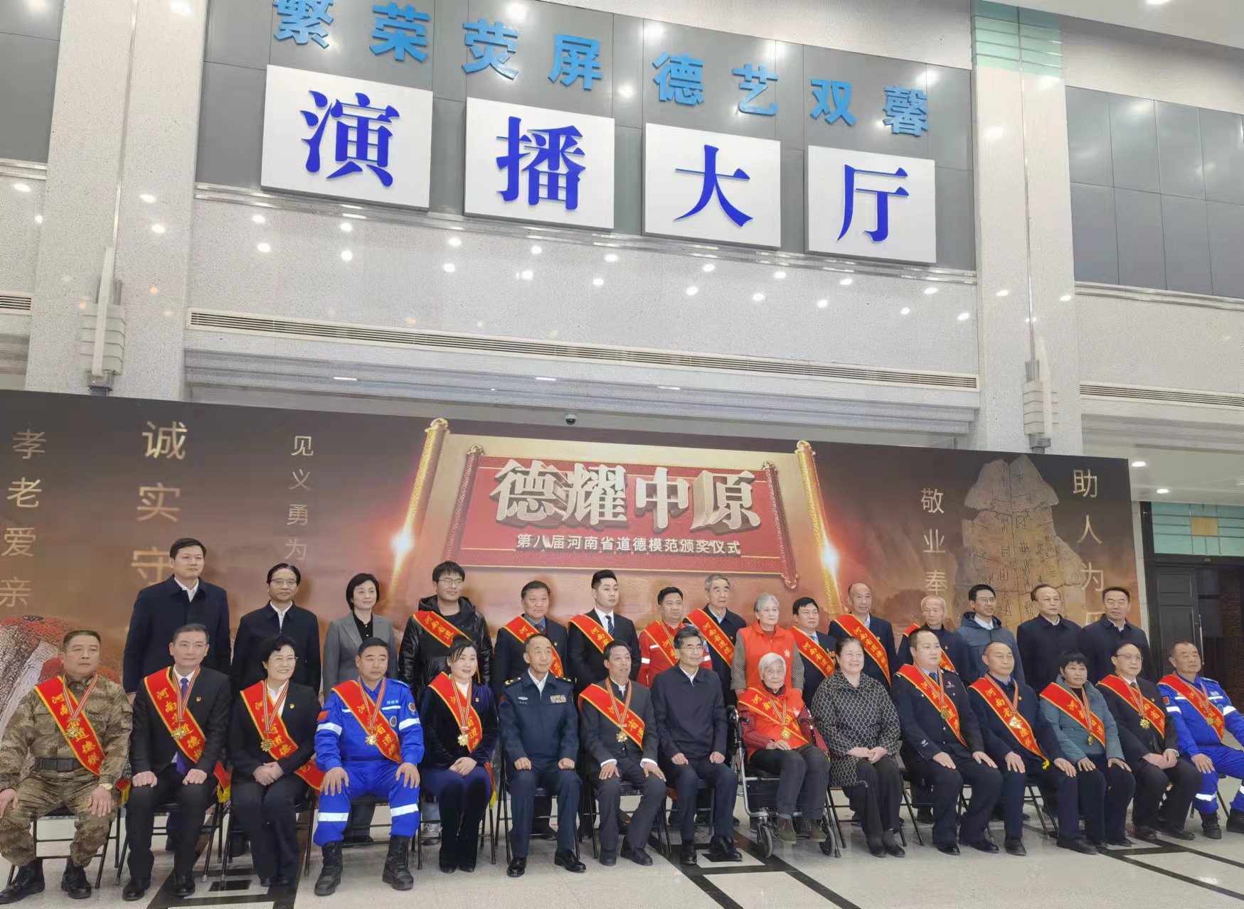 2月22日夜晚,河南廣播電視台1500平米演播廳張燈結綵,座無虛席,「德耀中原——第八屆河南省道德模範頒獎儀式」在這裏隆重舉行,河南省委常委、宣傳部部長、河南省文明委副主任王戰營,河南省政協黨組副書記、副主席、河南省文明委副主任周春艷,河南省軍區副政委兼紀委書記、河南省文明委副主任劉金來出席會議,與嘉賓、媒體記者和近十四位道德模範齊聚一堂,共同見證承優傳良、崇德向善的動人旋律。