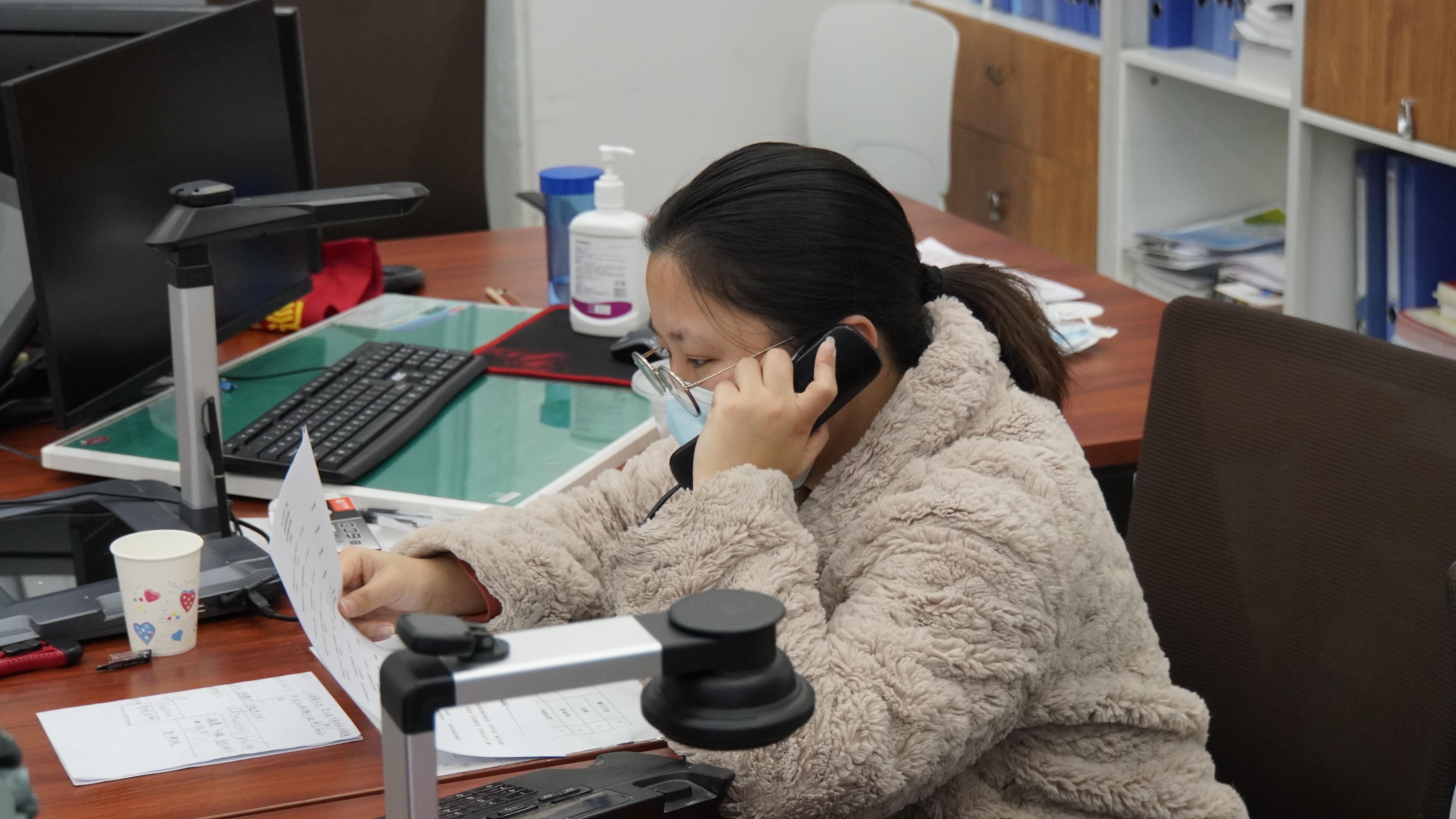 6點過後,諮詢電話更加頻繁。「往往一個電話沒掛斷,下一個電話已經打進來了。」網格員徐靜表示,自己和同事們對針對居民收到短訊的解答已經很熟悉,所以一般情況不需要在電話里進行長時間的釋疑,大多數情況不到30秒就能說清楚。即使這樣,也會在通話過程中進來1-2個電話,高峰時段幾乎是10秒鐘一個諮詢來電。