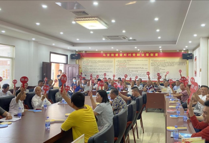 「在不影響城市規劃的情況下,建設一座公益性骨灰樓,解決周邊開發發展帶來的先人骨灰安置難的問題,同時進一步推進殯改工作……」去年4月,在金町村黨群議事廳里,一場議事協商會議正在召開,參與本次會議的有村民代表、村務監督委員會成員、黨員代表和村「兩委」幹部,他們手握「贊成」、「反對」「棄權」的牌子,為決議事項投出堅定的一票,整個議事過程都有視頻記錄,決議結果向公眾公開,真正實現「需求由村民表達、問題由村民討論、事務由村民參與」的自治模式。