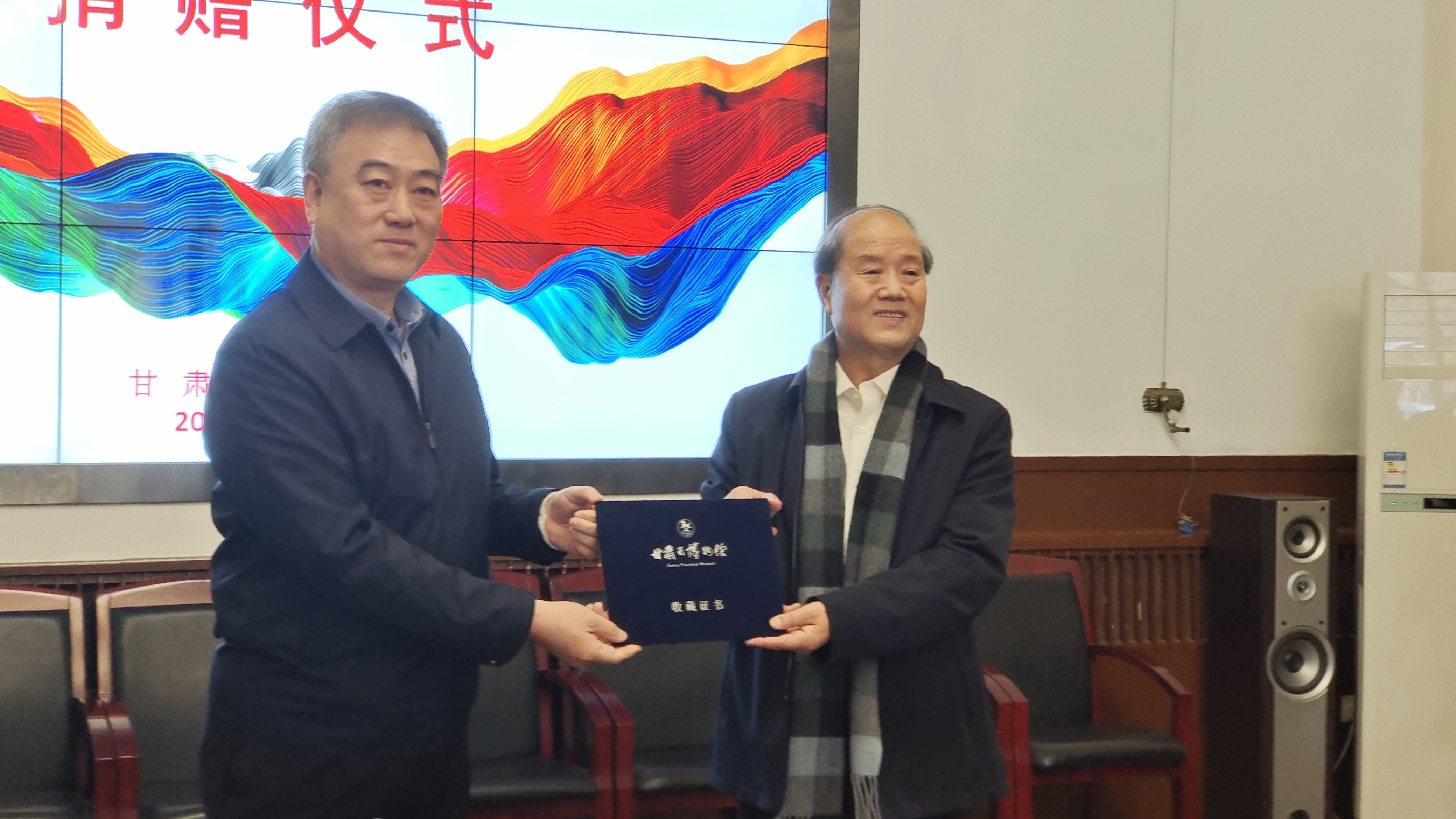 22日,由甘肅省文化和旅遊廳、省文學藝術界聯合會主辦的「鄭國斌書法作品捐贈儀式」上,鄭國斌向甘肅省博物館捐贈了近20年來創作的10件書法精品,包括大楷、小楷、草書等,共計50餘萬字,由甘肅省博物館永久收藏。