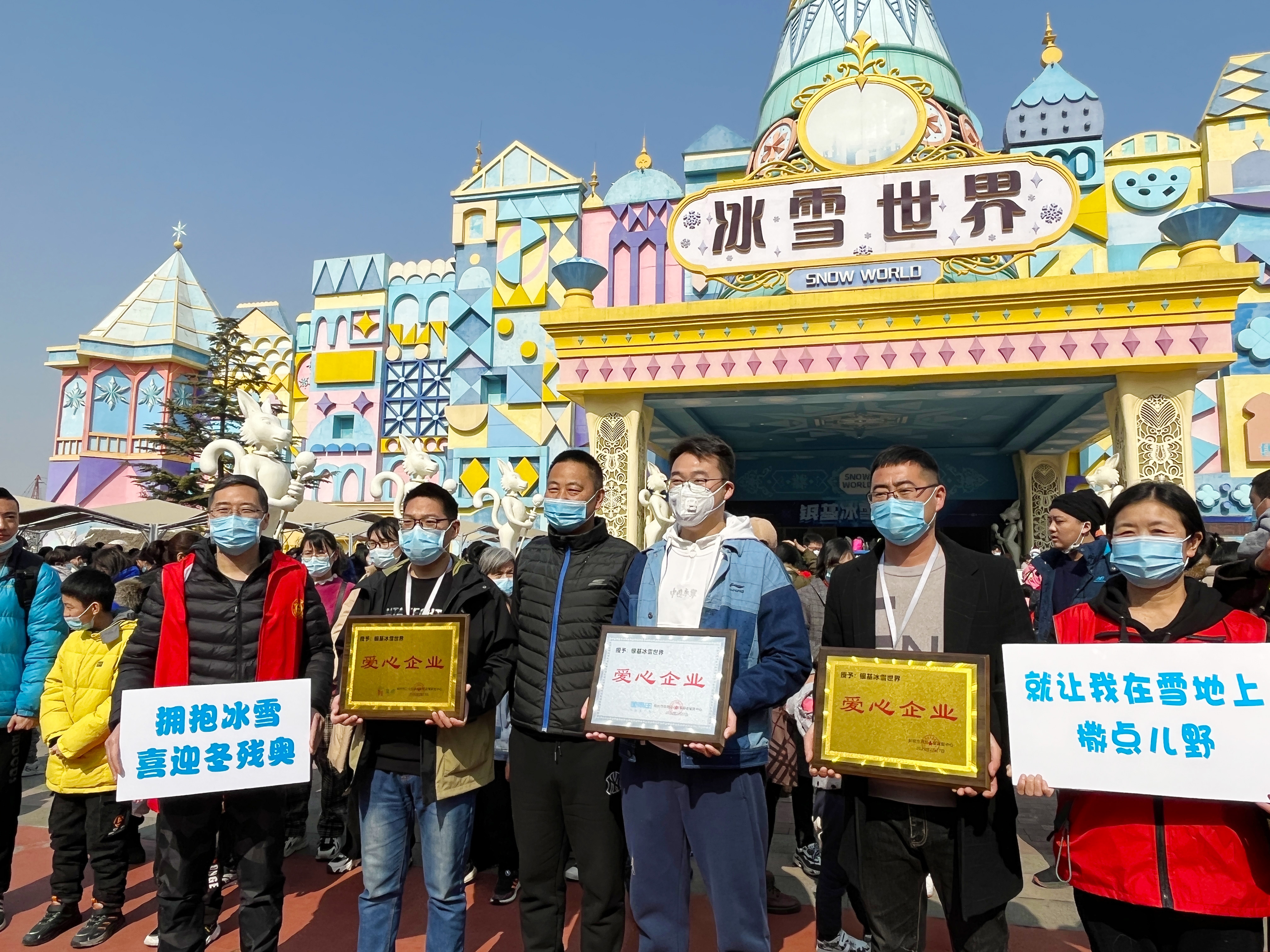 活動開始之前主辦方為銀基冰雪世界授予了「愛心企業」稱號。「銀基將會繼續積極參與社會公益活動,主動承擔更多社會責任,用實際行動回饋社會。」銀基文旅集團市場中心副總經理張紅超說。