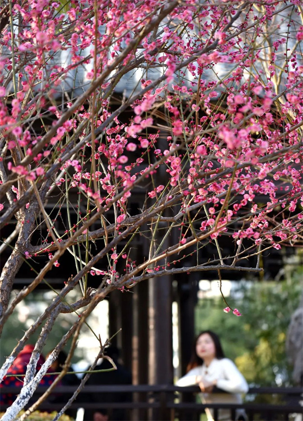 「最近梅花又在朋友圈刷屏了,真的特別美!」當日上午,正在公園拍照的何女士趁着晴好天氣來到公園賞花,一株株芳香四溢的梅花令她流連忘返,情願暫停手中的拍攝,盡情細嗅馥郁梅香。「前幾天還是花骨朵,哪知道一夜之間全開了。」她說,這幾天特別暖和,趁着天氣好,不需出遠門,就在家門口的公園來看看,既能感受春天的氣息,又能放鬆一下心情。