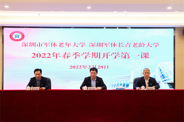 2月28日上午,深圳市軍休服務管理中心舉行深圳市軍休老年大學、深圳軍休長青老齡大學2022年春季學期開學儀式。深圳市退役軍人事務局副局長、深圳市軍休老年大學校長王文全出席活動。