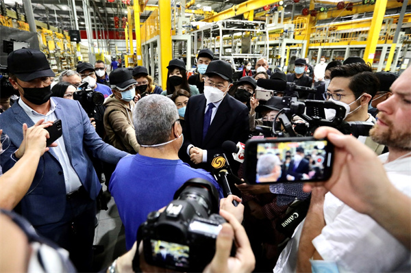 秦刚大使表示:“在兰卡斯特工厂的参观非常愉快。这里生产的大巴和卡车被投放到了很多美国城市,你甚至可以在迪士尼乐园附近也能看到比亚迪大巴。我们都有梦想,在比亚迪兰卡斯特工厂,你能看到中国与美国员工互帮互助,大家不仅是在共同生产大巴,更是在携手筑梦——这个梦想关乎更多的就业机会、更好的未来、更绿色的世界。”