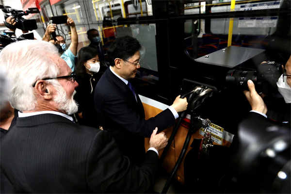 最后,秦刚大使从Rex Parris市长手中接过充电枪,为比亚迪大巴充电,并进一步肯定了比亚迪在公交电动化方面做出的积极贡献。