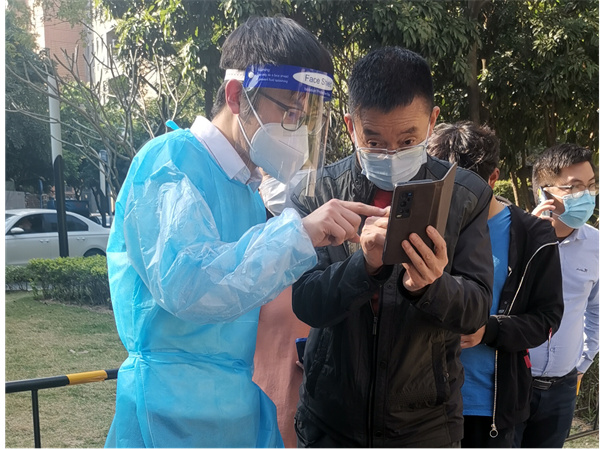 3月4日下午,在光明區科技創新局牽線搭橋下,深港澳基地企業聯手鳳凰街道辦在招商智慧城核酸採樣點開展了社區核酸檢測點支援工作。