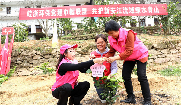 歙縣與淳安縣是省際邊界線,兩縣婦聯貫徹落實習近平總書記生態文明思想,著力推進新安江流域上下游生態環境共同保護,在街口鎮開展新安江流域環保黨建巾幗聯盟,同時舉辦“同植紅旗林,共護母親河”活動。